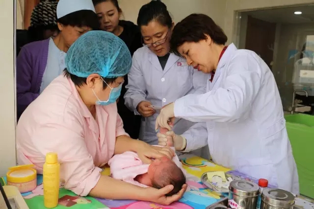 金淑子院长与凤凰妇产医院医技人员演示新生儿足跟血采集操作规范
