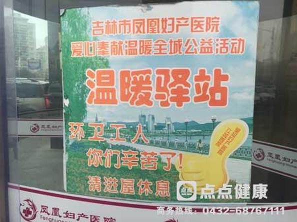 凤凰妇产科医院的陈书记说:“多年来我们一直关注着社会公益活动,我们在医院内专门设立了给环卫工人休息的地方,在寒冷的冬季环卫工人还可以在我们医院免费领取到热牛奶咖啡。在夏天的时候我们还会搭起凉棚,给环卫工人避暑,希望我们的举动可以帮助到他们。”