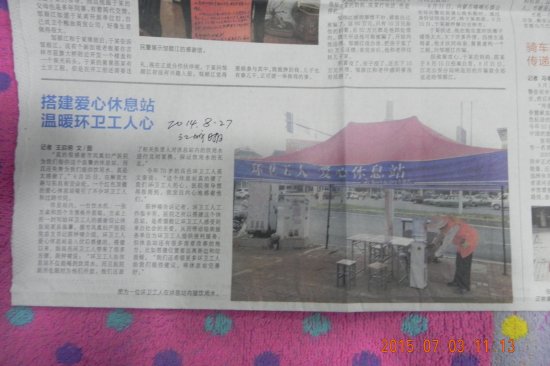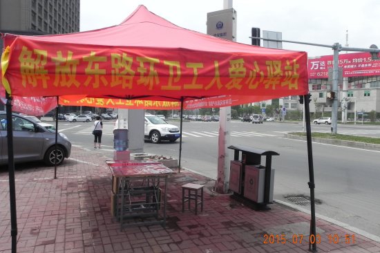 6月12日,凤凰妇产医院党总支与东局子街道盛昌社区党总支共同在医院前广场举行“解放东路环卫工人爱心驿站”启动仪式,将几年来坚持设置的环卫工人休息点再次设置起来。东局子街道党工委副书记赵迪、盛昌社区党总支书记赵丽媛及环卫工人代表出席活动,并且为“解放东路环卫工人爱心驿站”揭幕。